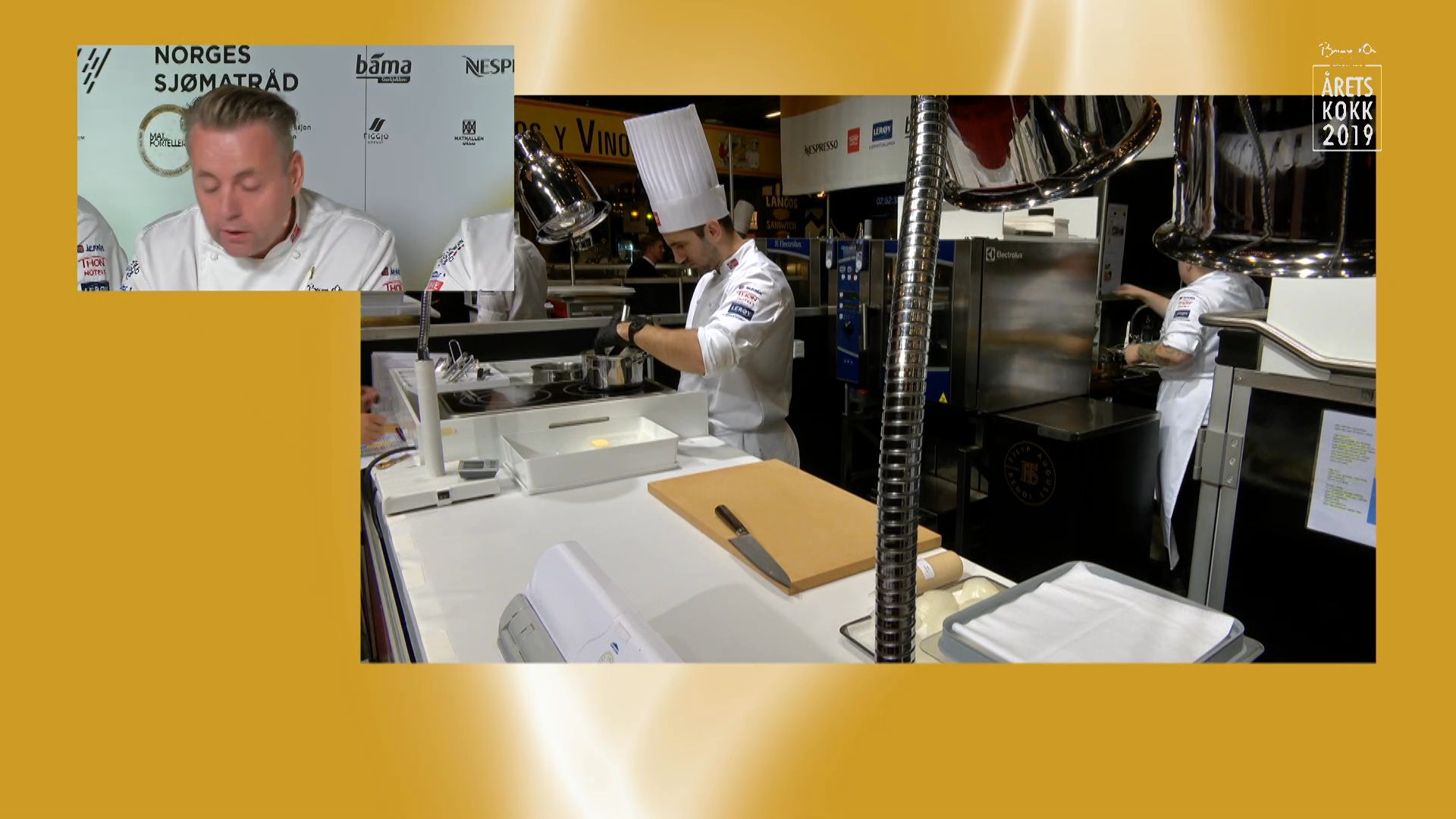 Fra klokken 19.00 finner vi Harald Osa og Renee Fagerhøi i ekspertkommentatorboksen, hvor de skal kommentere arbeid, råvarer og retter når Årets kokk-kandidatene presenterer sine kveitetrilogier og sine fat ned Norsk rødt fe.